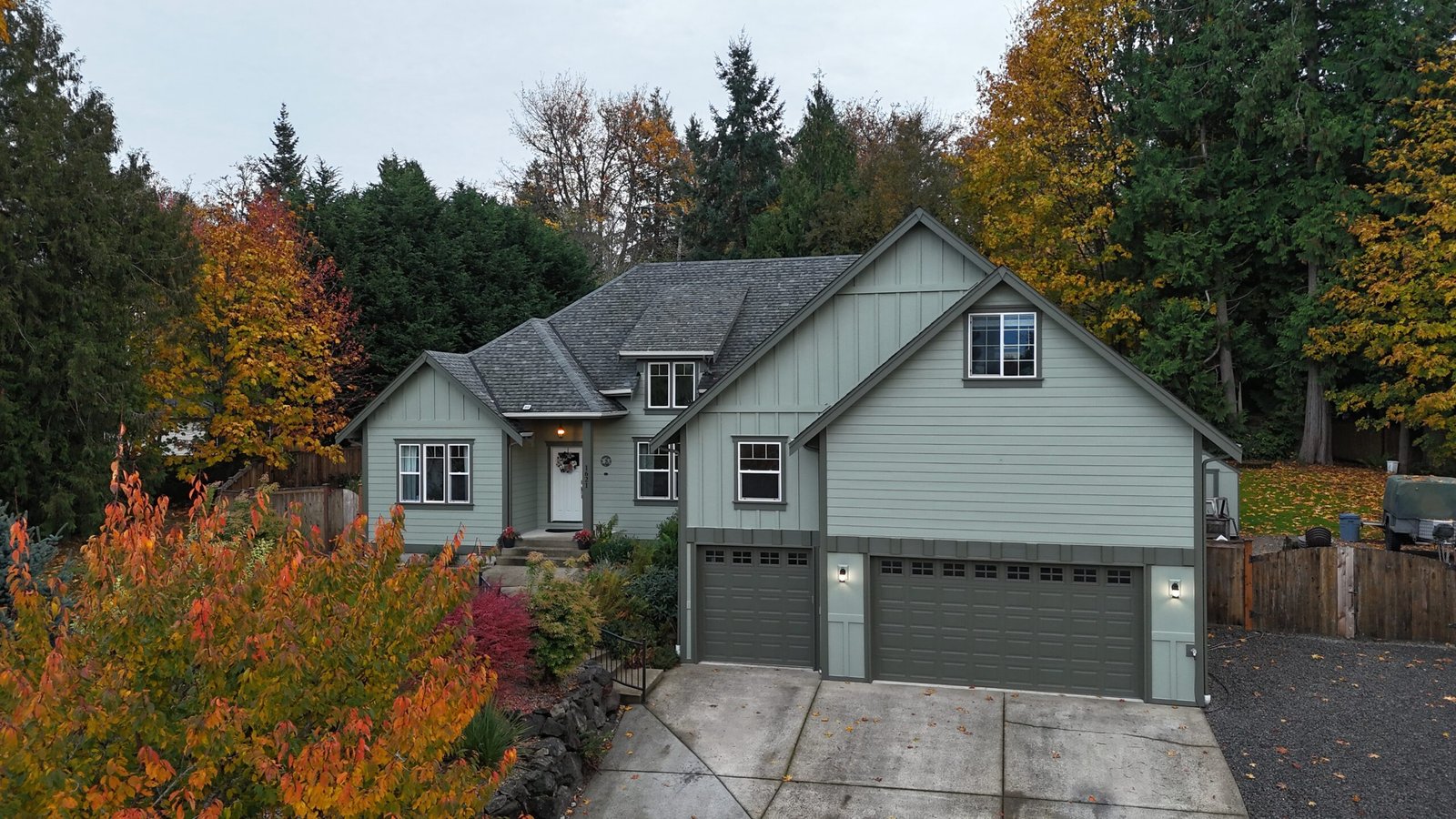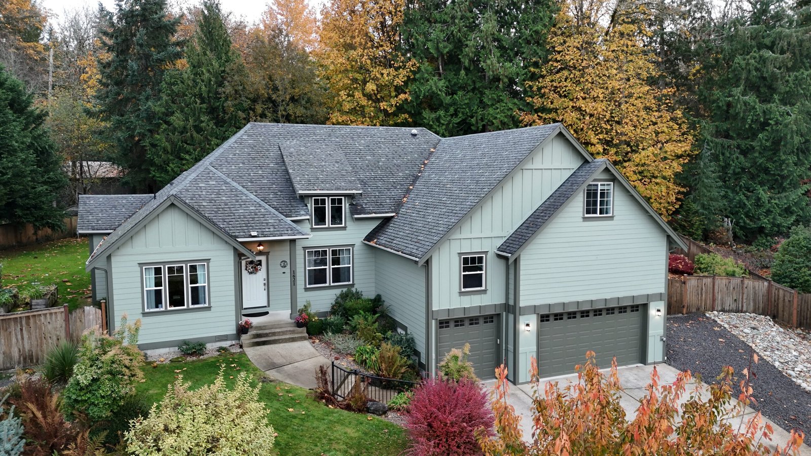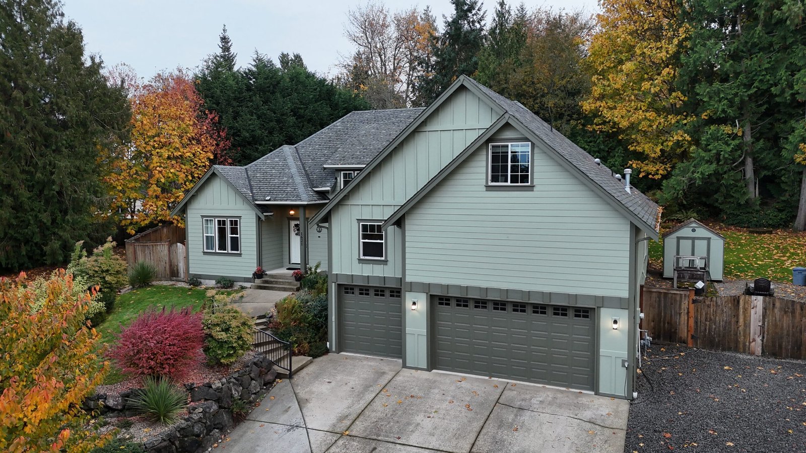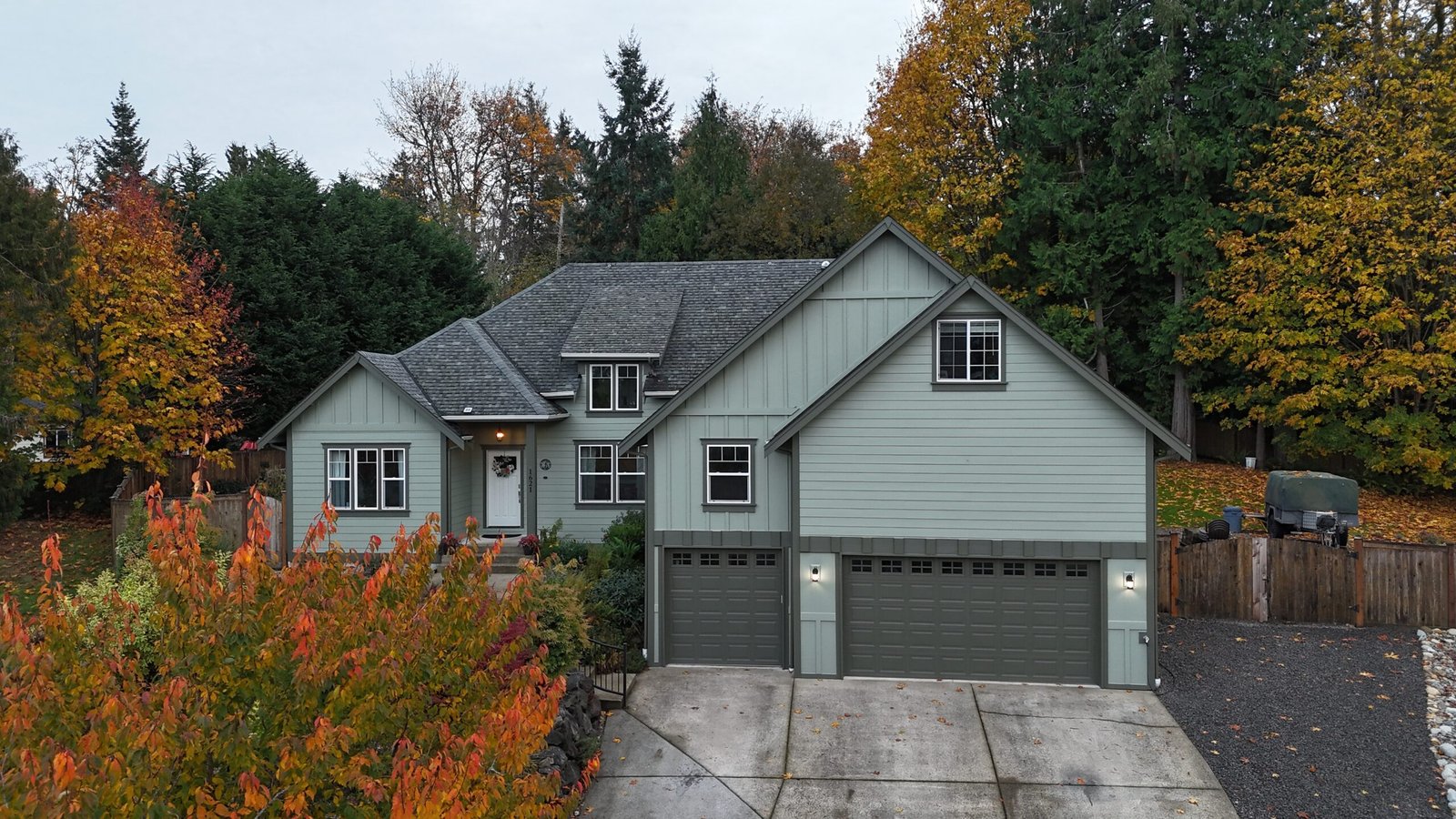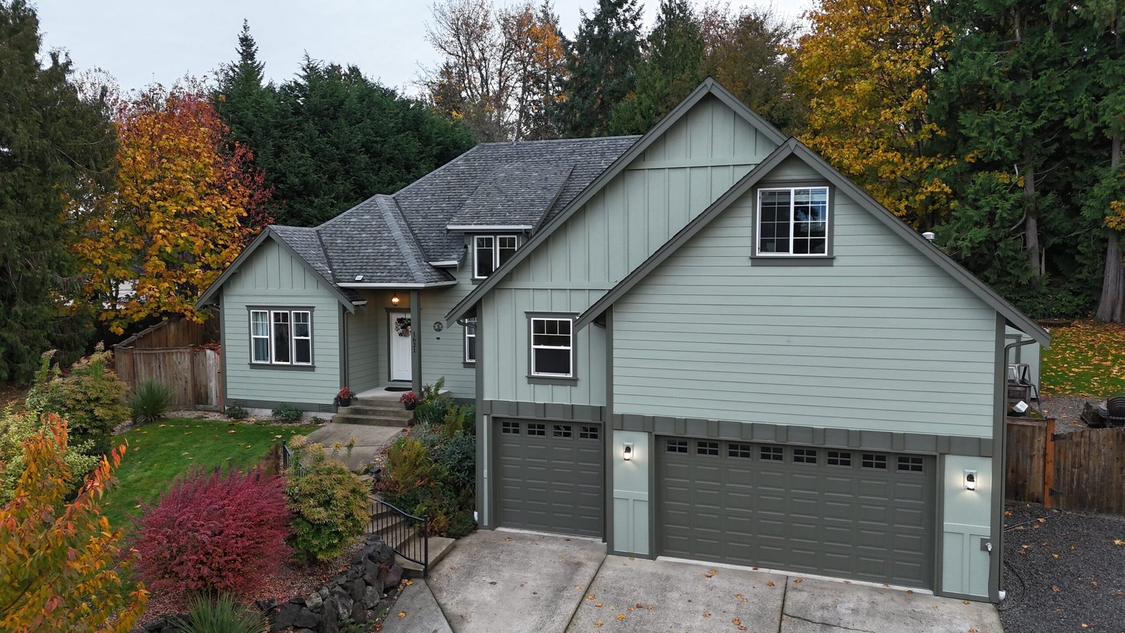 This Port Orchard home received a full exterior repaint that transformed it from a muted dual-tone gray palette into a modern, nature-inspired green color scheme. The garage and trim were finished in a rich dark green, while the main body of the home was painted in a soft sage tone that creates a calm, cohesive look. The new dual-tone green design blends beautifully with the surrounding Pacific Northwest greenery, giving the home a refreshed and contemporary presence. The final result is a warm, modern exterior that elevates the home while harmonizing with its natural environment.