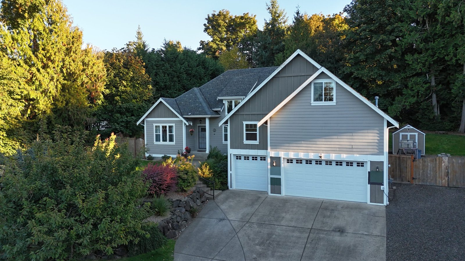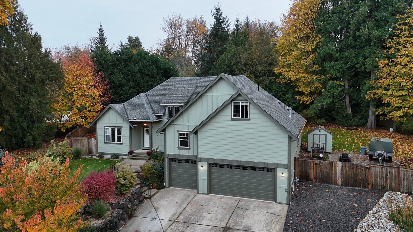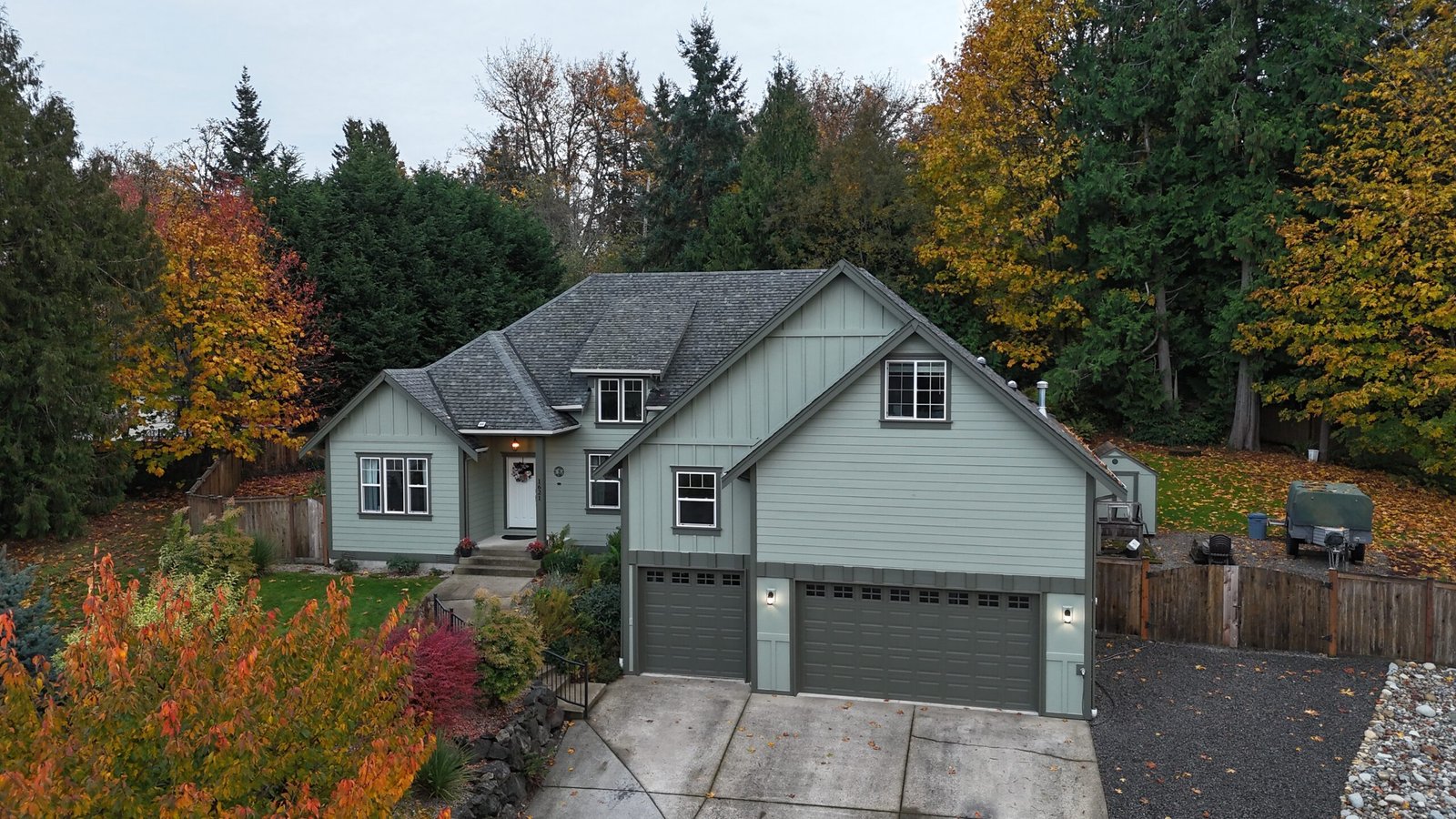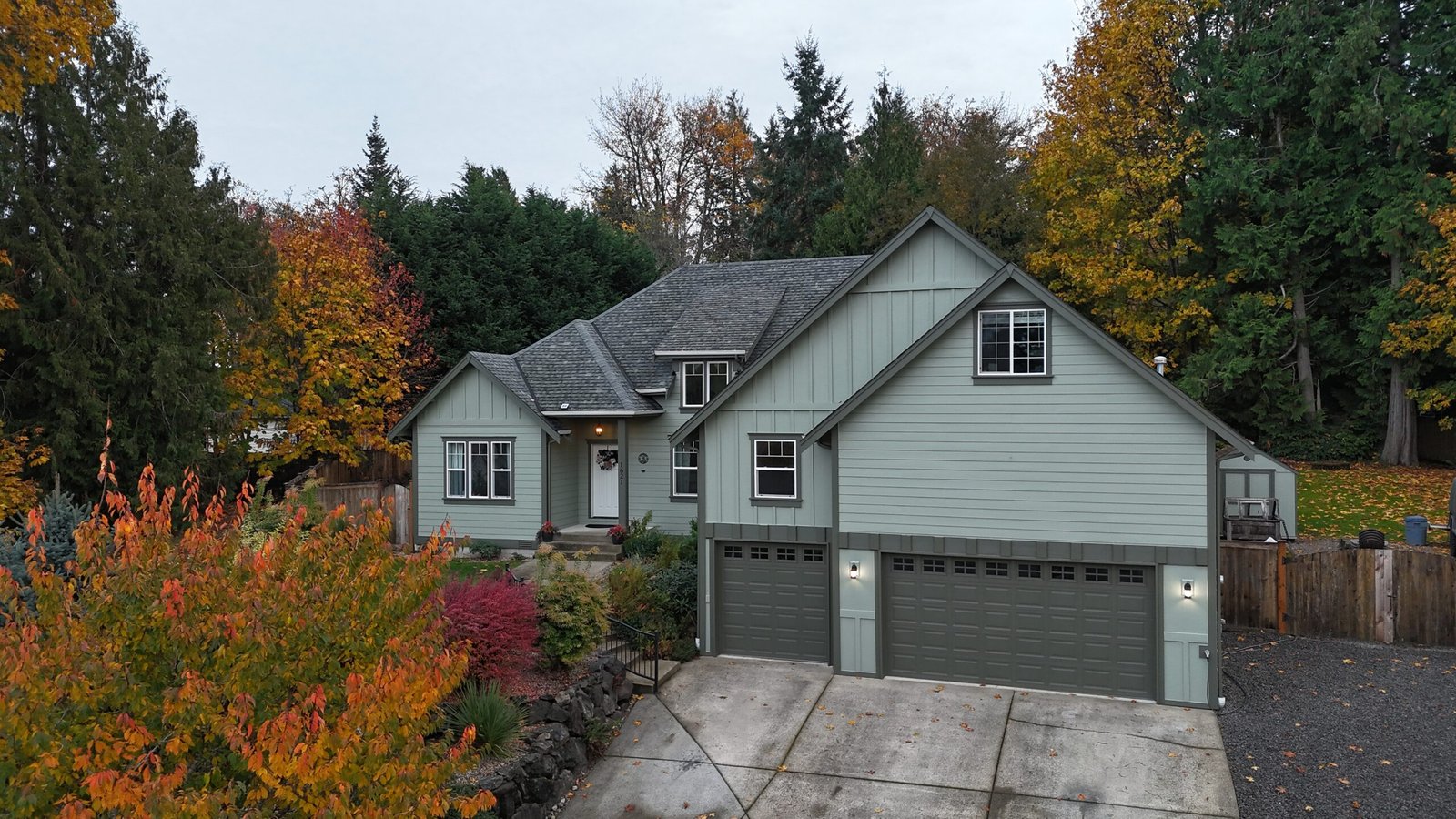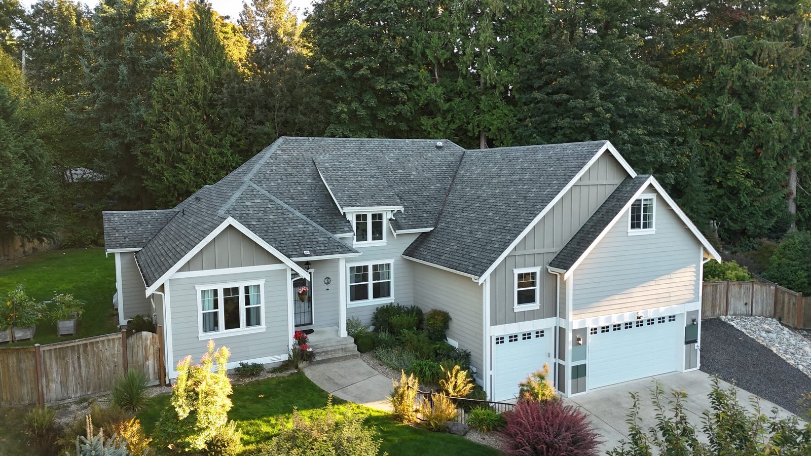 This Port Orchard home received a full exterior repaint that transformed it from a muted dual-tone gray palette into a modern, nature-inspired green color scheme. The garage and trim were finished in a rich dark green, while the main body of the home was painted in a soft sage tone that creates a calm, cohesive look. The new dual-tone green design blends beautifully with the surrounding Pacific Northwest greenery, giving the home a refreshed and contemporary presence. The final result is a warm, modern exterior that elevates the home while harmonizing with its natural environment.
